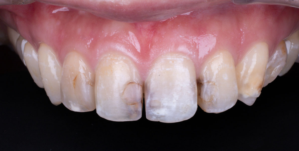 長達 6 年的矯正期終於畢業了,但牙齒多處裂痕、失色,讓 A 小姐總少了點開口大笑的自信。